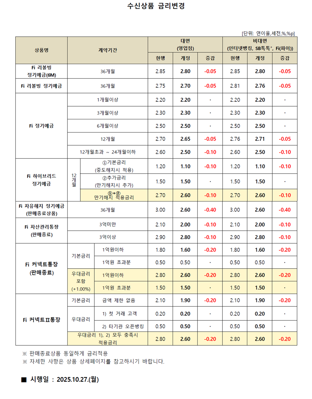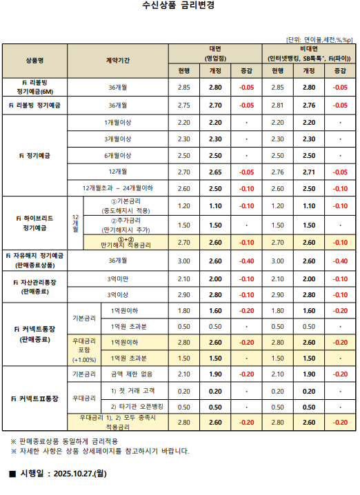 [상품안내] 수신상품 금리변경 안내 [2025.10.27(월)부터 적용]