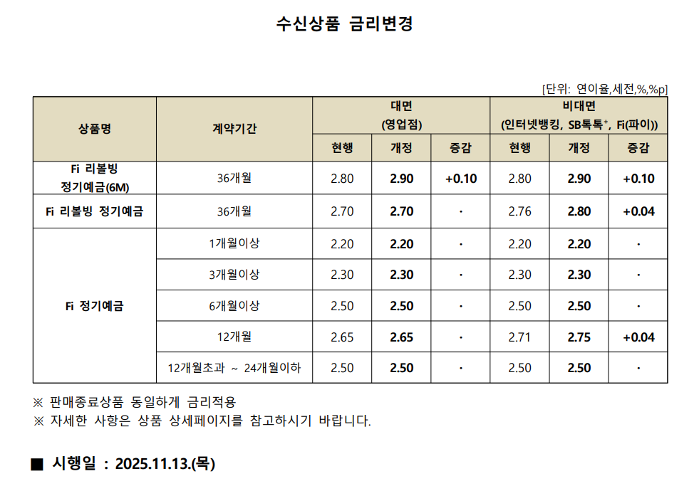 [상품안내] 수신상품 금리변경 안내 [2025.11.13(목)부터 적용]