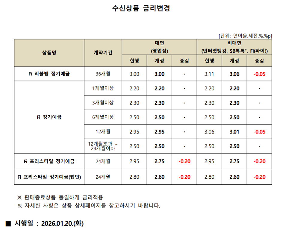 [상품안내] 수신상품 금리변경 안내 [2026.01.20.(화)부터 적용]