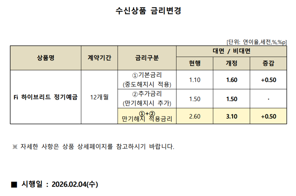 [상품안내] 수신상품 금리변경 안내 [2026.02.04(수)부터 적용]